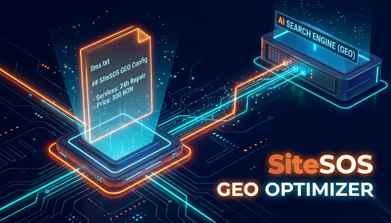 🔧 Te simți depășit de noile cerințe tehnice? Echipa SiteSOS este aici pentru a transforma site-ul tău într-o entitate de încredere pentru ChatGPT și Gemini. Implementăm pachetul complet de vizibilitate AI (llms.txt + robots.txt optimizat + Schema Custom) în maximum 24 de ore, la prețul fix de 500 RON (+TVA).